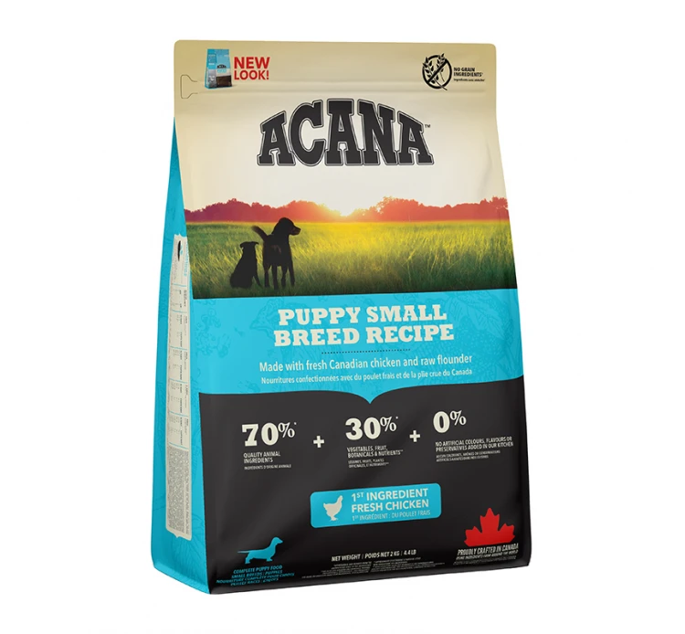 Πλήρης τροφή χωρίς σιτηρά για το μικρόσωμο κουταβάκι σας, με κοτόπουλο και γαλοπούλα. Για την υποστήριξη της σύντομης και έντονης περιόδου ανάπτυξης των κουταβιών των μικρόσωμων φυλών, με αναμενόμενο βάρος ενηλικίωσης τα 9 κιλά. Τα σκυλάκια των μικρόσωμων φυλών έχουν ανάγκη μία διατροφή πλούσια σε ζωϊκή πρωτεΐνη και λίπος. Για αυτό η τροφή αυτή είναι πλούσια σε 70% κοτόπουλο ελευθέρας βοσκής, αβγά από φωλιά και καλκάνι αλιευμένο στη φύση. Όλα αυτά σε μία μπουκιά που είναι ιδανική για κουτάβια μικρόσωμων φυλών.