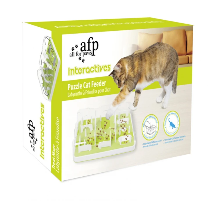 Παιχνίδι λαβύρινθος με θήκη για τροφή ή λιχουδιές, για τη γατούλα σας. Στο παιχνίδι αυτό μπορείτε να κρύψετε την τροφή ή τις λιχουδιές της μικρής μας φίλης και έτσι να την προκαλέσετε να τις ανακαλύψει. Αποτελείται από διαφορετικά ανοίγματα και εμπόδια, καθένα από τα οποία παρουσιάζει στη γατούλα σας μια νέα πρόκληση. Έτσι, αυτό το παιχνίδι εκπαιδεύει την επιδεξιότητα της μικρής μας φίλης σε διάφορους τομείς και της προσφέρει μια ουσιαστική απασχόληση καθώς και πολλή διασκέδαση.