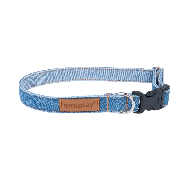 Περιλαίμιο με ρυθμιζόμενο μήκος, από 100% βαμβακερό τζιν ύφασμα, σε γαλάζιο χρώμα, για το σκυλάκι σας. Είναι ανθεκτικό, με πλαστικό κούμπωμα – κλιπ και μπαινοβγαίνει εύκολα. Διατίθεται σε διάφορα μεγέθη για να διαλέξετε το κατάλληλο για το σκυλάκι σας. Εκτός από την ασφάλεια που του παρέχει στη βόλτα, ένα περιποιημένο περιλαίμιο και η σωστή επιλογή του είναι μια πράξη φροντίδας και αγάπης για το μικρό μας φίλο!