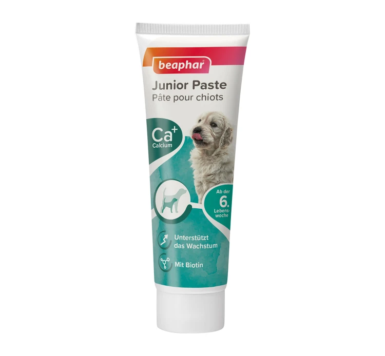 Συμπλήρωμα διατροφής σε μορφή πάστας, για κουταβάκια άνω των 4 εβδομάδων. Ο συνδυασμός πολύτιμων βιταμινών ζωτικής σημασίας, το ασβέστιο, η βιοτίνη, τα Ωμέγα-3 & Ωμέγα-6 και η L-καρνιτίνη υποστηρίζουν την ανάπτυξη του σκυλάκου σας. Το ασβέστιο που περιέχει είναι σημαντικό για τη δομή των οστών και για την καλή ανάπτυξη των δοντιών. Η L-καρνιτίνη συμβάλλει στο σχηματισμό ισχυρών μυών, υποστηρίζει τη λειτουργία της καρδιάς και τη μετατροπή του λίπους σε ενέργεια. Η βιοτίνη και τα Ωμέγα λιπαρά οξέα επίσης συμβάλλουν σε ανθεκτικό δέρμα, λαμπερό και υγιές τρίχωμα.