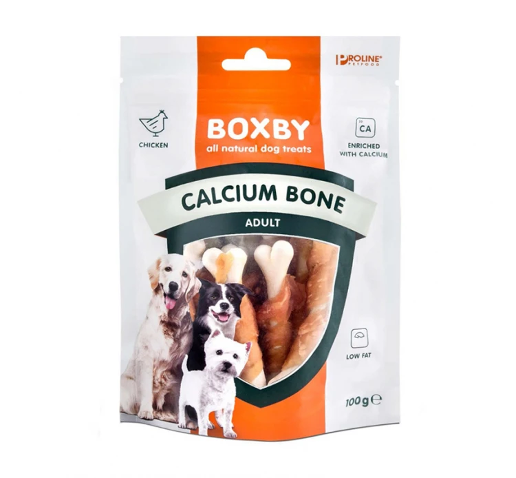 Κόκαλα ασβεστίου με κοτόπουλο, για το ενήλικο μικρόσωμο ή μεσαίου μεγέθους σκυλάκι σας. Παρασκευάζονται από φυσικά συστατικά, χωρίς σιτηρά και γλουτένη, έχουν χαμηλή περιεκτικότητα σε λιπαρά και υψηλή περιεκτικότητα σε πρωτεΐνη και αποτελούν την ιδανική απόλαυση για το μικρό μας φίλο. Με τα κόκαλα αυτά ο μικρός μας φίλος χαλαρώνει και εκτονώνεται, ενώ παράλληλα ενδυναμώνει τους στοματικούς του μύες και τους μύες του σώματός του με την μάσηση. Μπορείτε να τα προσφέρετε στο σκυλάκι σας είτε ως λιχουδιά είτε ως επιβράβευση κατά τη διάρκεια της εκπαίδευσής του. Η συσκευασία τους είναι επανασφραγιζόμενη ώστε να διατηρούνται πάντα φρέσκα.