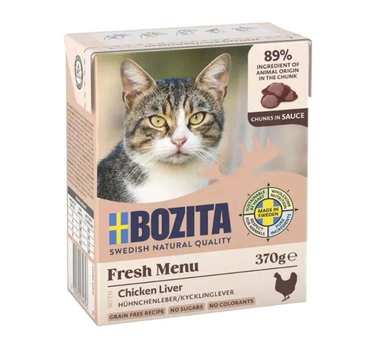 Πλήρης υγρή τροφή με συκώτι κοτόπουλου σε σάλτσα, για τη γατούλα σας. Η εξαιρετικά γευστική αυτή τροφή είναι παρασκευασμένη με αγνά υλικά, χωρίς σιτηρά, χωρίς τεχνητές χρωστικές, αρωματικές ουσίες ή συντηρητικά. Το συκώτι αποτελεί μία από τις ελάχιστες φυσικές τροφές που καταφέρνουν να συνδυάσουν τόσα πολλά και διαφορετικά θρεπτικά συστατικά, και μάλιστα σε τόσο υψηλές συγκεντρώσεις, όπως Βιταμίνη Α, Β, D, χαλκό, σίδηρο, σελήνιο και ψευδάργυρο. Η τροφή έχει ψηλή περιεκτικότητα σε κρέας που παρέχει μια φυσικά ισορροπημένη περιεκτικότητα σε βιταμίνες και μέταλλα για την καθημερινή διατροφή της μικρής μας φίλης.
