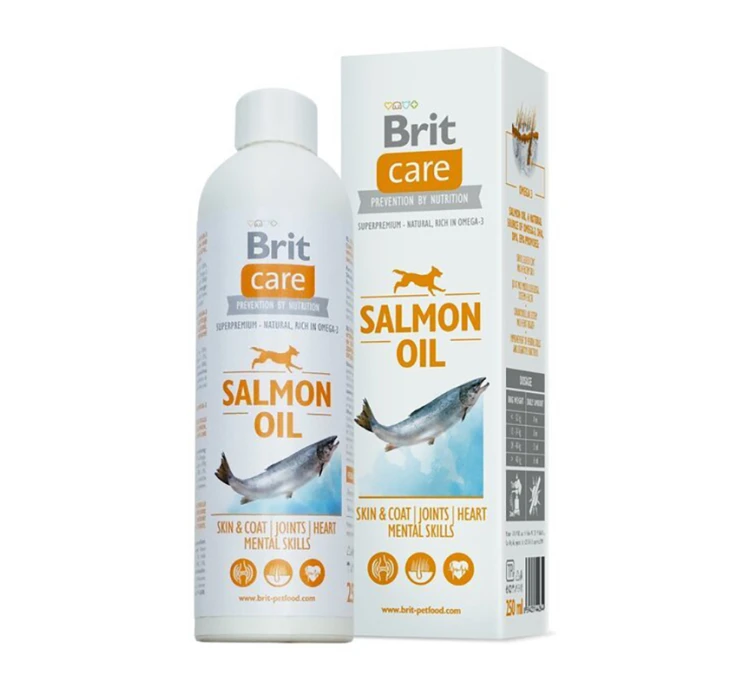 Λάδι σολομού για το ανήλικο ή το ενήλικο σκυλάκι σας. Το λάδι σολομού προτείνεται για την αντιμετώπιση μιας σειράς προβλημάτων υγείας όπως: ξηροδερμία, κνησμός και διάφοροι τύποι αλλεργίας του δέρματος, έκζεμα, μολύνσεις του δέρματος, πιτυρίδα, τριχόπτωση, αλωπεκία, λιπαρότητα τριχώματος, αραιό τρίχωμα, θαμπό τρίχωμα, εξασθενημένο ανοσοποιητικό σύστημα. Είναι εξαιρετική πηγή Ωμέγα-3 και Ωμέγα-6 λιπαρών οξέων (EPA και DHA), που επηρεάζουν θετικά πολλές μεταβολικές διεργασίες του οργανισμού, προλαμβάνουν και θεραπεύουν πολλά προβλήματα του δέρματος και του τριχώματος, ενισχύουν την εγκεφαλική λειτουργία και ενδυναμώνουν το ανοσοποιητικό σύστημα. Έχουν φυσική αντιφλεγμονώδη δράση και μειώνουν το επίπεδο χοληστερόλης στο αίμα. Έχει πολύ ωραία γεύση και έτσι λειτουργεί και ως διεγερτικό όρεξης, καθιστώντας την τροφή του μικρού μας φίλου γευστική και ελκυστική.
