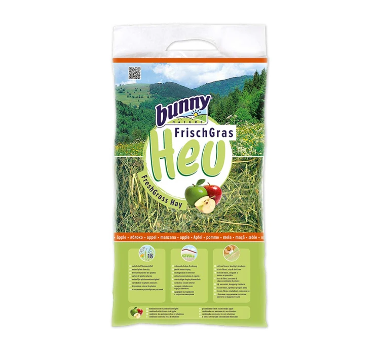 Χόρτο με ποικιλία από 18 φυτά, με μήλο, για κουνέλια και ινδικά χοιρίδια. Το χόρτο στεγνώνει φυσικά σε εσωτερικούς χώρους και είναι πλούσιο σε ίνες, τραγανό και χωρίς σκόνη. Τα τραγανά στελέχη και η μεγάλη περιεκτικότητα σε ακατέργαστες ίνες είναι απαραίτητα για τη βέλτιστη τριβή των δοντιών και για ένα υγιές πεπτικό σύστημα. Είναι απαραίτητο για την καθημερινή διατροφή και μπορείτε να το προσφέρετε στο κατοικίδιό σας χωρίς περιορισμό.