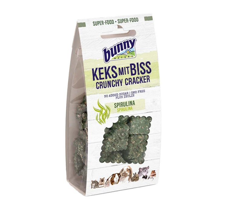 Τραγανά μπισκότα με σπιρουλίνα, για όλα τα τρωκτικά. Παρασκευάζονται χωρίς προσθήκη ζάχαρης, συντηρητικά και χρωστικές. Περιέχουν ινουλίνη που είναι χρήσιμη για τον έλεγχο των επιπέδων σακχάρου στο αίμα και για τη διατήρησή του σε υγιές επίπεδο, καθώς και για την υγεία της εντερικής χλωρίδας. Μπορείτε να τα προσφέρετε στους μικρούς μας φίλους ως λιχουδιά μεταξύ των γευμάτων.