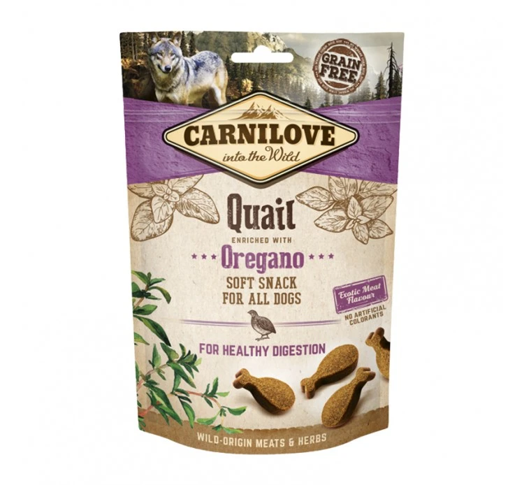 Μαλακά σνακ, για το σκυλάκι σας με ορτύκι και ρίγανη. Εμπνευσμένα από τη διατροφή με κρέας άγριας προέλευσης. Το σνακ αυτό δεν περιέχει δημητριακά και είναι εξαιρετικά γευστικό, ενώ τα συστατικά του βοηθούν τους μικρούς μας φίλους να έχουν υγιή πέψη. Μπορείτε να τους τα προσφέρετε είτε ως λιχουδιά είτε ως ανταμοιβή κατά τη διάρκεια της εκπαίδευσής τους.