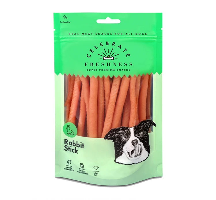 Sticks από κρέας κουνελιού για το σκυλάκι σας. Φτιαγμένα από φυσικά συστατικά, με χαμηλά λιπαρά, χωρίς σιτηρά και χωρίς γλουτένη. Μπορείτε να τα προσφέρετε στο μικρό μας φίλο είτε ως λιχουδιά είτε ως επιβράβευση στα πλαίσια της εκπαίδευσής του. Διαθέτουν επανακλειόμενη συσκευασία για να διατηρούνται φρέσκα μέχρι το τελευταίο!