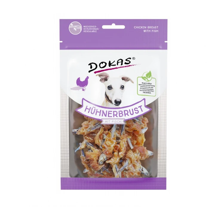 Λιχουδιές από στήθος κοτόπουλου και αντζούγια, για το σκυλάκι σας. Αυτές οι εξαιρετικής ποιότητας λιχουδιές έχουν χαμηλή περιεκτικότητα σε λιπαρά και αποτελούν την ιδανική απόλαυση για το μικρό μας φίλο. Μπορείτε να του τις προσφέρετε είτε ως λιχουδιά στα πλαίσια μιας ισορροπημένης διατροφής, είτε ως επιβράβευση κατά τη διάρκεια της εκπαίδευσής του. Η συσκευασία τους είναι επανασφραγιζόμενη ώστε να διατηρούνται πάντα φρέσκες.