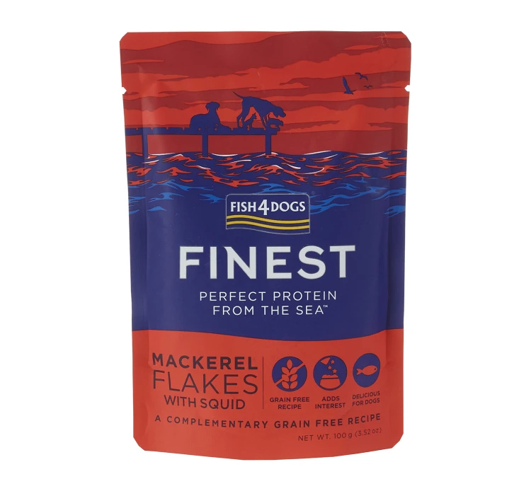 Συμπληρωματική υγρή τροφή, χωρίς σιτηρά, με σκουμπρί και καλαμάρι σε φιλετάκια για το ανήλικο ή το ενήλικο σκυλάκι σας, ανεξαρτήτως φυλής. Πρόκειται για υγρή λιχουδιά πολυτελείας για σκυλάκους. Μπορεί να δοθεί και ως νόστιμο συμπλήρωμα στην ξηρά τροφή του μικρού μας φίλου!