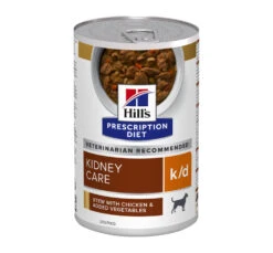 Πλήρης κλινική υγρή τροφή με μαγειρεμένο κοτόπουλο, λαχανικά και ρύζι, σε κομματάκια, για το ενήλικο ή ηλικιωμένο σκυλάκι σας. Η τροφή αυτή έχει ελεγχόμενα επίπεδα φωσφόρου και χαμηλά επίπεδα νατρίου και είναι εμπλουτισμένη με Ωμέγα-3 λιπαρά από ιχθυέλαιο. Επίσης έχει υψηλά επίπεδα απαραίτητων αμινοξέων και L-καρνιτίνης και έτσι υποστηρίζει τη φυσική ικανότητα σχηματισμού και διατήρησης της μυικής μάζας. Έχει υπέροχη γεύση ώστε να δελεάζει ακόμα και το πιο επιλεκτικό σκυλάκι και βοηθά τους μικρούς μας φίλους με χρόνια νεφρική νόσο να έχουν μια καλύτερη ποιότητα ζωής.