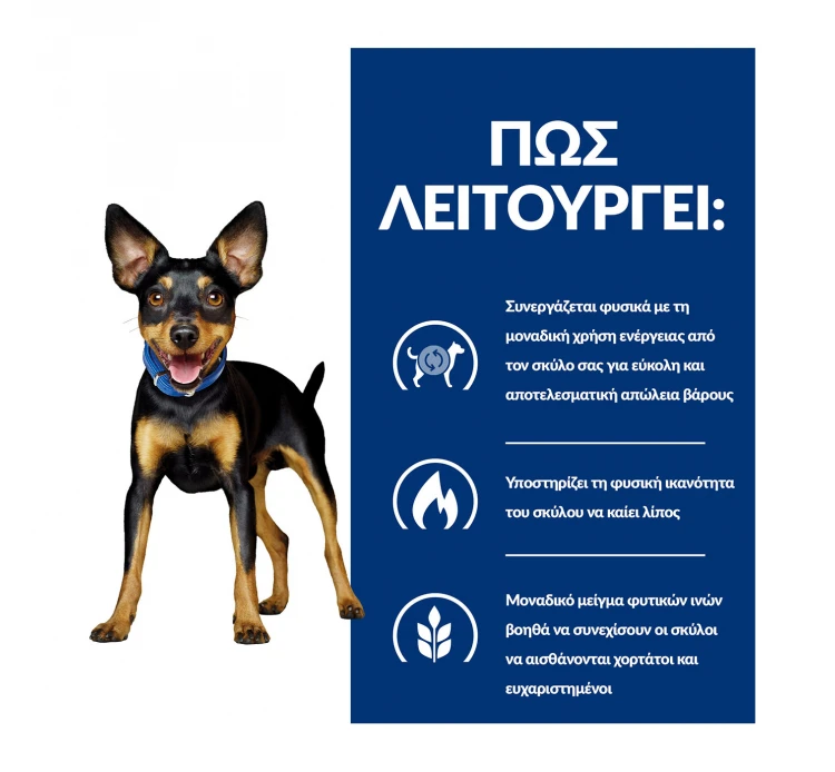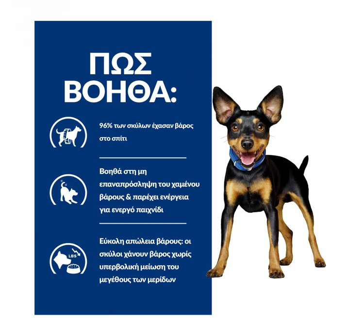 - Κατάλληλη για ενήλικους και ηλικιωμένους σκύλους μικρόσωμων φυλών με πρόβλημα παχυσαρκίας