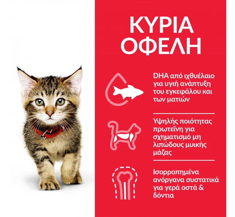 Πλήρης τροφή με κοτόπουλο, αυγό και ρύζι για το ανήλικο γατάκι σας και για τη μανούλα του κατά τη διάρκεια της εγκυμοσύνης ή της γαλουχίας. Η τροφή αυτή είναι σχεδιασμένη για να προάγει την ομαλή πέψη. Με κλινικά αποδεδειγμένα αντιοξειδωτικά, πρωτεΐνες και ίνες υψηλής πεπτικότητας για ισορροπημένη διατροφή ιδανική για το ξεκίνημα της ζωής της γατούλα σας.