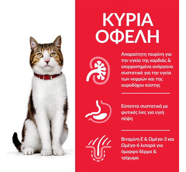 - Το κοτόπουλο είναι ένα άπαχο κρέας που προσφέρει στο γατάκι σας την απαραίτητη πρωτεΐνη που χρειάζεται ο οργανισμός του. Επιπλέον, ενισχύει το μυϊκό του σύστημα και είναι μία πλούσια πηγή Ωμέγα 6 λιπαρών οξέων, που διασφαλίζουν υγιές δέρμα και λαμπερό τρίχωμα. Τέλος, η παρουσία των αμινοξέων και της γλυκοζαμίνης χτίζουν υγιείς αρθρώσεις