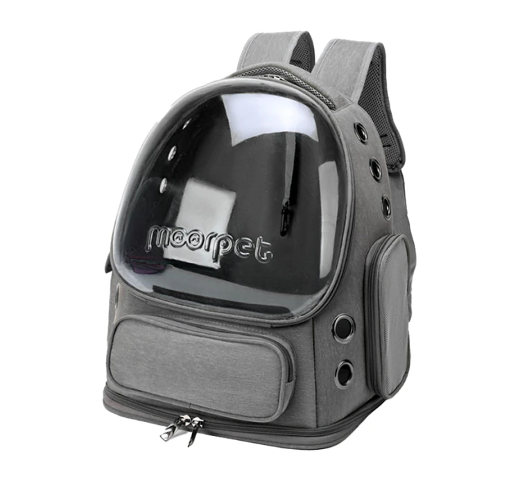 Τσάντα μεταφοράς για γατούλες και μικρόσωμα σκυλάκια. Η τσάντα αυτή προσφέρει στο κατοικίδιό σας ορατότητα ενώ έχει οπές που επιτρέπουν τον άριστο εξαερισμό. Έχει χειρολαβή αλλά και ιμάντες πλάτης ώστε να έχετε τα χέρια σας ελεύθερα. Επίσης, έχει εξωτερικές θήκες όπου μπορείτε να αποθηκεύετε τα απαραίτητα αξεσουάρ για τη βόλτα σας. Στο εσωτερικό έχει ιμάντα που μπορείτε να συνδέσετε με το περιλαίμιο του σκύλου ή της γάτας σας.