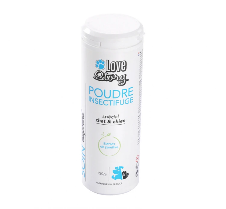 Aντιπαρασιτική πούδρα για το σκυλάκι ή το γατάκι σας, ανεξαρτήτως φυλής και ηλικίας. Η πούδρα αυτή προφυλάσσει τους μικρούς μας φίλους από όλα τα εξωπαράσιτα, με σεβασμό προς το περιβάλλον. Προστατεύει το δέρμα από ερεθισμούς, ενώ παράλληλα αφήνει ένα ευχάριστο άρωμα και δίνει λάμψη στο τρίχωμα του σκυλάκου σας ή της γατούλας σας.