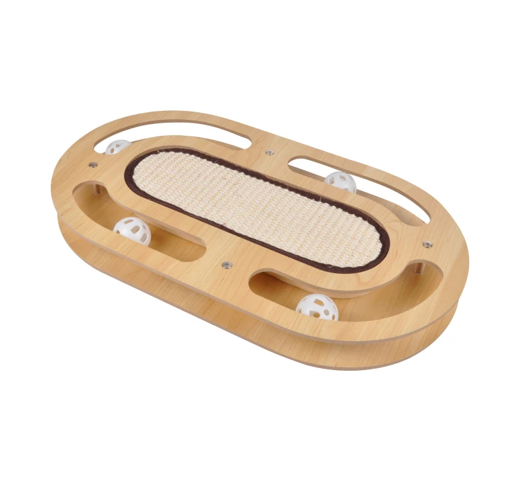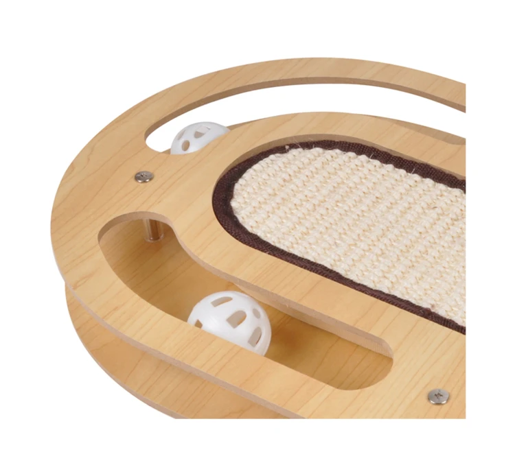 Διαδραστικό ξύλινο παιχνίδι με μπαλίτσες με κουδουνάκια και επιφάνεια ξυσίματος για τη γατούλα σας. Το παιχνίδι αυτό θα διεγείρει την περιέργεια της μικρής μας φίλης καθώς θα προσπαθεί να πιάσει τις μπαλίτσες που κάνουν ήχο με τα κουδουνάκια τους. Διαθέτει και επιφάνεια για να ξύνει τα νυχάκια της, και έτσι θα συνδυάσει το παιχνίδι με την αγαπημένη της συνήθεια, ενώ ταυτόχρονα θα αναπτύσσει τις δεξιότητές της!