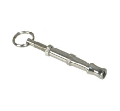 Μεταλλική σφυρίχτρα με ρυθμιζόμενη συχνότητα για την εκπαίδευση του σκυλάκου σας. Είναι ένα εξαιρετικό εργαλείο επικοινωνίας για εκπαίδευση υπακοής, χωρίς να βλάπτει την ακοή του μικρού μας φίλου. Επίσης, είναι ένας τρόπος να εκπαιδεύσετε το σκυλάκι σας χωρίς να χρειάζεται να χρησιμοποιήσετε σκληρά λόγια ή μεθόδους εκπαίδευσης. Είναι μικρή και πρακτική και μπορείτε να την αποθηκεύσετε στην τσέπη σας ή να την κρεμάσετε στα κλειδιά ή τη ζώνη σας, από το κρικάκι που διαθέτει.