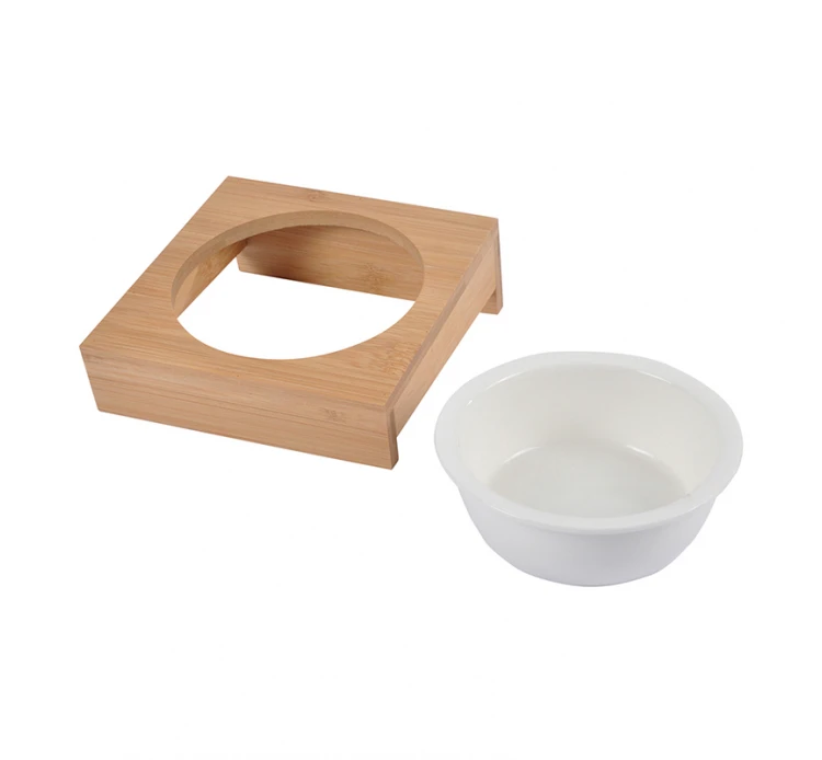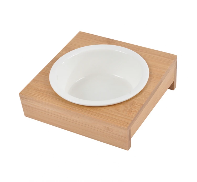 Ξύλινη βάση με κεραμικό μπολ για το φαγητό ή το νερό των μικρών μας φίλων. Η βάση βοηθά στη σταθεροποίηση των μπολ και έτσι δε χρειάζεται να ανησυχείτε ότι θα μετακινηθούν ή θα ανατραπούν. Διατίθεται σε 2 μεγέθη μπολ, 14εκ. και 16εκ.