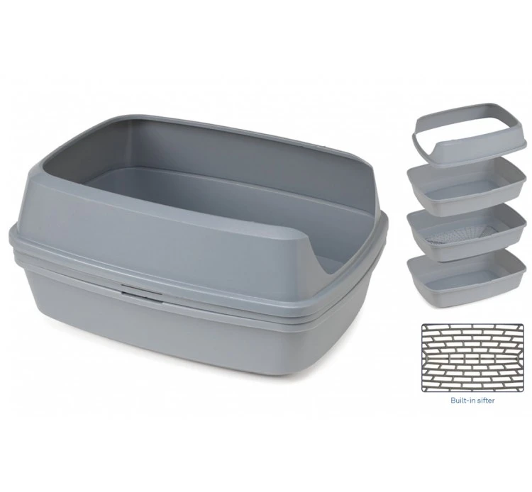 Αυτοκαθαριζόμενη τουαλέτα ανοιχτού τύπου 3 σε 1 για τη γατούλα σας. Είναι εύκολη στη χρήση, με συμπαγή δοχεία που αποτρέπουν τις διαρροές ενώ είναι κατάλληλα σχεδιασμένα για να αποφεύγεται ο διασκορπισμός των ακαθαρσιών. Έχει δύο λεκάνες και συλλέκτη ακαθαρσιών για αυτοκαθαριζόμενο σύστημα. Είναι κατασκευασμένη από πλαστικό υψηλής ποιότητας, που εγγυάται μακροχρόνια χρήση. Δεν χρειάζεται φτυαράκι και σακούλα, αφού καθαρίζεται μέσα σε δευτερόλεπτα, αφήνοντας πίσω ένα καθαρό δοχείο άμμου. Πλένεται με νερό και σαπούνι, για εύκολο καθάρισμα.