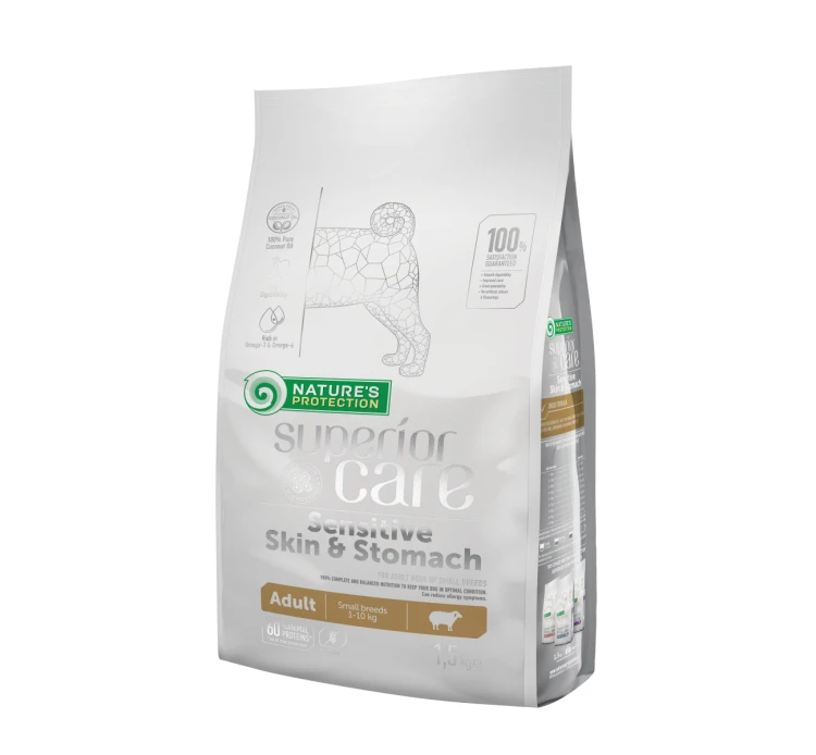 Πλήρης τροφή με αρνί, για τον ενήλικο σκυλάκο σας μικρόσωμης φυλής. Η τροφή αυτή έχει σχεδιαστεί για την πρόληψη γαστρεντερικών και δερματικών παθήσεων. Έχει ως κύρια πηγή πρωτεΐνης είναι το αρνί που είναι εύπεπτο για το μικρό μας φίλο, ενώ δεν περιέχει γλουτένη, καλαμπόκι ή σιτάρι, επομένως συνιστάται για αλλεργικούς σκύλους με ευαίσθητο πεπτικό σύστημα. Είναι εμπλουτισμένη με λάδι καρύδας, εξαιρετικά πολύτιμο συστατικό, λόγω των αντιβακτηριακών, αντιμικροβιακών και αντιικών ιδιοτήτων του. Περιέχει φυσικά αντιοξειδωτικά όπως η βιταμίνη Ε και το εκχύλισμα δεντρολίβανου που βοηθούν στην προστασία των κυττάρων από την αρνητική επίδραση των ελεύθερων ριζών με απόλυτα φυσικό τρόπο. Περιέχει επίσης κλινοπτιλόλιθο, ένα φυσικό ορυκτό, που διεγείρει ενεργά την εντερική μικροχλωρίδα και την απορρόφηση θρεπτικών συστατικών. Λόγω της ειδικής μικροδομής μπορεί να βοηθήσει στην απομάκρυνση των τοξινών από το σώμα και στην ενίσχυση του ανοσοποιητικού συστήματος.