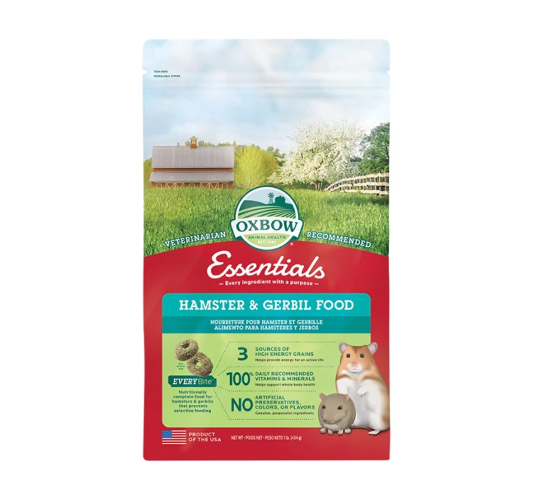 Πλήρης τροφή σε κροκέτες, με βάση το χόρτο Timothy, για χάμστερ και γέρβιλους. Περιλαμβάνει ισορροπημένες πηγές πρωτεΐνης, λίπους και υδατανθράκων για ενέργεια, καθώς και αντιοξειδωτικά και πρεβιοτικά για την υποστήριξη της υγείας ολόκληρου του σώματος. Παρέχει στους μικρούς μας φίλους το 100% των ημερήσιων συνιστώμενων βιταμινών και μετάλλων, χωρίς τεχνητά συντηρητικά, χρώματα ή γεύσεις.