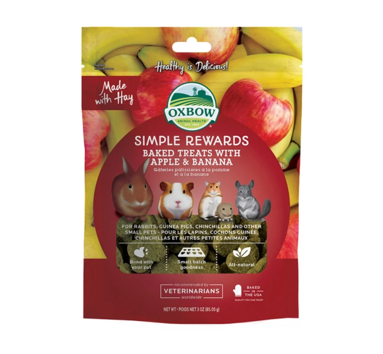 - Λιχουδιές ψημένες, με χόρτο Timothy, μήλο και μπανάνα
