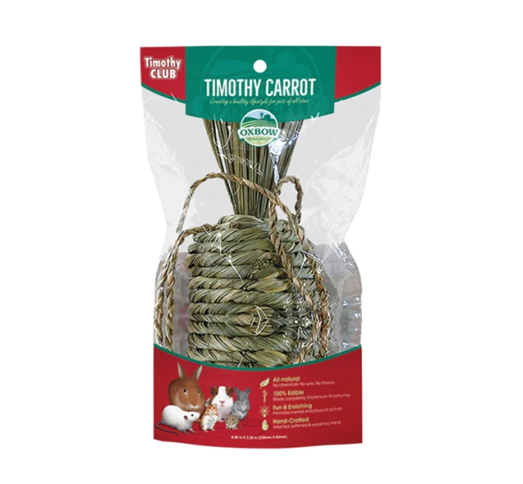 Φαγώσιμη λιχουδιά σε σχήμα καρότου, από χόρτο Timothy, για όλα τα τρωκτικά. Μπορείτε να την τοποθετήσετε οπουδήποτε στο περιβάλλον του μικρού μας φίλου, ή να την κρεμάσετε προκειμένου να ενθαρρύνετε το μάσημα και την αλληλεπίδραση.