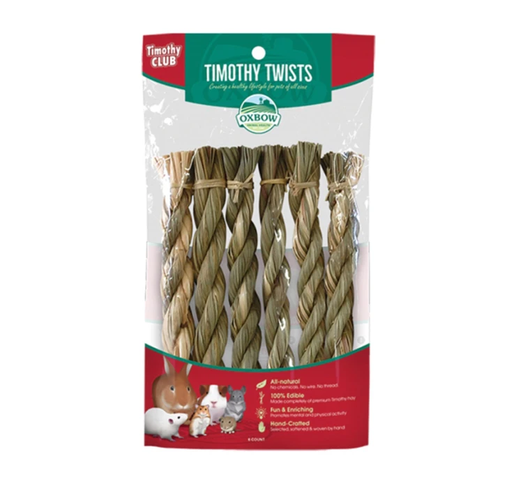 Λιχουδιές από χόρτο Timothy, για όλα τα τρωκτικά. Μπορείτε να τις τοποθετήσετε οπουδήποτε στο περιβάλλον του μικρού μας φίλου και έτσι να να ενθαρρύνετε το μάσημα και την αλληλεπίδραση.