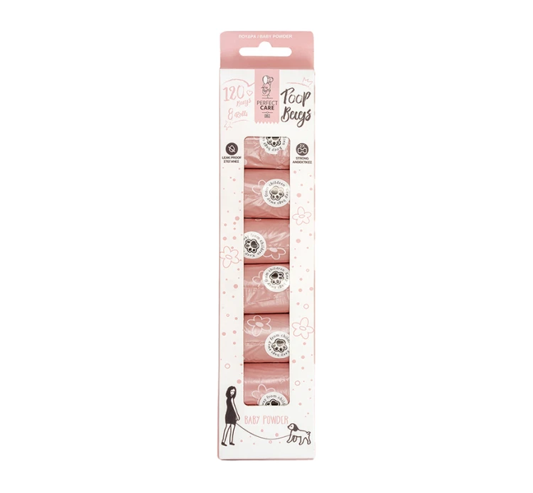 Σακούλες απορριμμάτων, εξαιρετικά ανθεκτικές, με άρωμα πούδρας. Η συσκευασία περιέχει 8 ρολά, με 15 σακούλες το κάθε ρολό. Μην ξεχνάτε να έχετε πάντα μαζί σας σακούλες σε κάθε βόλτα με το μικρό μας φίλο!