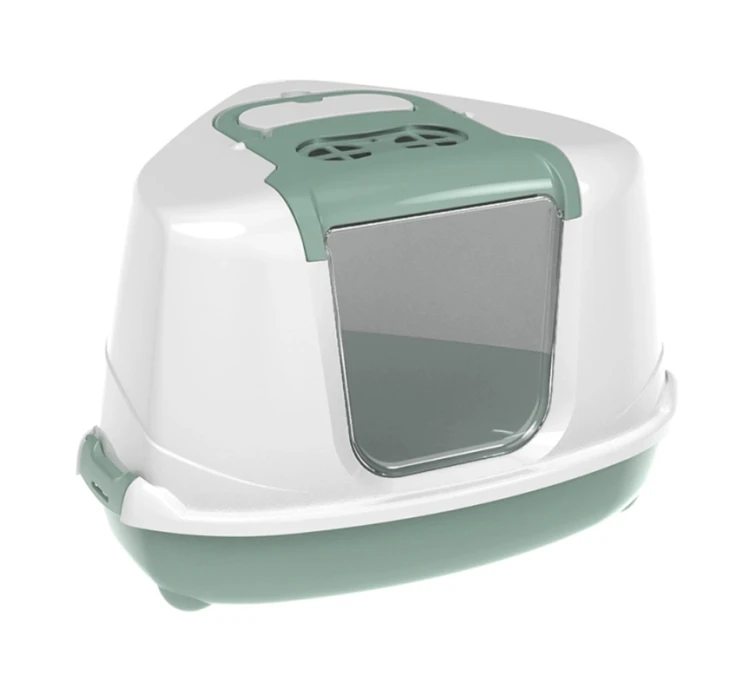 Κλειστή γωνιακή τουαλέτα με πορτάκι και φίλτρο για να απομακρύνει τις δυσάρεστες οσμές. Το σχήμα της είναι ιδανικό για να την τοποθετήσετε σε γωνία και έτσι να εξοικονομήσετε χώρο. Είναι κατασκευασμένη από ανθεκτικό πλαστικό για μακροχρόνια χρήση, ενώ καθαρίζεται πολύ εύκολα με σαπούνι και νερό. Διαθέτει εύχρηστη λαβή για εύκολη μεταφορά. Διατίθεται σε 4 χρώματα, ροζ, λαχανί, μπλε και γκρι. Στη συσκευασία περιλαμβάνεται φτυαράκι για να την καθαρίζετε εύκολα.