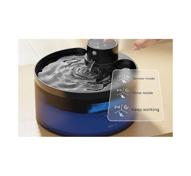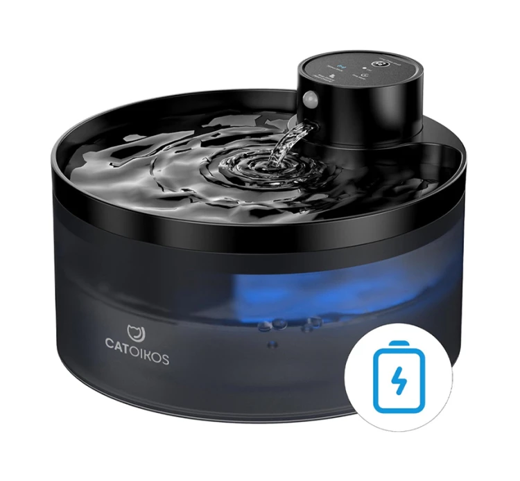 Συντριβάνι συνεχούς ροής, κατάλληλο για γατούλες και σκυλάκια. Ο ήχος του νερού ενθαρρύνει το μικρό μας φίλο να πίνει περισσότερο νερό. Έχει κυκλικό σύστημα ροής νερού για συνεχόμενη ροή και αθόρυβη αντλία. Η μέθοδος επεξεργασίας νερού γίνεται μέσω φίλτρων τα οποία αφαιρούν τις δυσοσμίες, τα υπολείμματα & τις τρίχες από το νερό, το ανανεώνουν και το οξυγονώνουν. Το σχήμα του δίνει τη δυνατότητα στους μικρούς μας φίλους να πίνουν νερό από όλη την επιφάνεια του συντριβανιού. Διαθέτει αισθητήρα στάθμης νερού, που έχει ένδειξη με μπλε φως όταν το νερό είναι επαρκές, και κόκκινο φως όταν πρέπει να προσθέσετε νερό. Στην περίπτωση που το νερό εξαντληθεί, το συντιριβάνι σταματάει να λειτουργεί. Επίσης διαθέτει αισθητήρα κίνησης που ενεργοποιεί τη ροή του νερού κάθε φορά που ο μικρός μας φίλος πλησιάζει προς το συντριβάνι. Αυτό βοηθά στη μείωση της κατανάλωσης ενέργειας και επίσης καθιστά το νερό περισσότερο ελκυστικό. Ακόμη, υπάρχει επιλογή λειτουργίας ροής νερού ανά 15 λεπτά, ώστε το νερό να ανανεώνεται και να είναι διαθέσιμο για το σκυλάκι ή τη γατούλα σας. Επιπλέον, χάρη στην ενσωματωμένη επαναφορτιζόμενη μπαταρία, μπορείτε να το τοποθετήσετε σε οποιοδήποτε μέρος του σπιτιού σας εξυπηρετεί, χωρίς να χρειάζεται να είναι στην πρίζα. Στη συσκευασία περιλαμβάνεται καλώδιο με αντάπτορα. Διατίθενται επίσης ανταλλακτικά φίλτρα για την καλύτερη λειτουργία του.