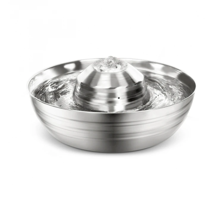 Συντριβάνι συνεχούς ροής, κατάλληλο για γατούλες και μικρόσωμα σκυλάκια. Η επιφάνεια από ανοξείδωτο ατσάλι δεν προκαλεί αλλεργίες και είναι κατάλληλη για γατούλες και σκυλάκια που έχουν ευαισθησία στο πλαστικό. Ο ήχος του νερού ενθαρρύνει το μικρό μας φίλο να πίνει περισσότερο νερό. Έχει κυκλικό σύστημα ροής νερού για συνεχόμενη ροή και αθόρυβη αντλία 5V. Η μέθοδος επεξεργασίας νερού γίνεται μέσω φίλτρων τα οποία αφαιρούν τις δυσοσμίες, τα υπολείμματα & τις τρίχες από το νερό. Το σχήμα του δίνει τη δυνατότητα στους μικρούς μας φίλους να πίνουν νερό από όλη την επιφάνεια του συντριβανιού. Στη συσκευασία περιλαμβάνεται φορτιστής με αντάπτορα. Διατίθενται επίσης ανταλλακτικά φίλτρα για την καλύτερη λειτουργία του.