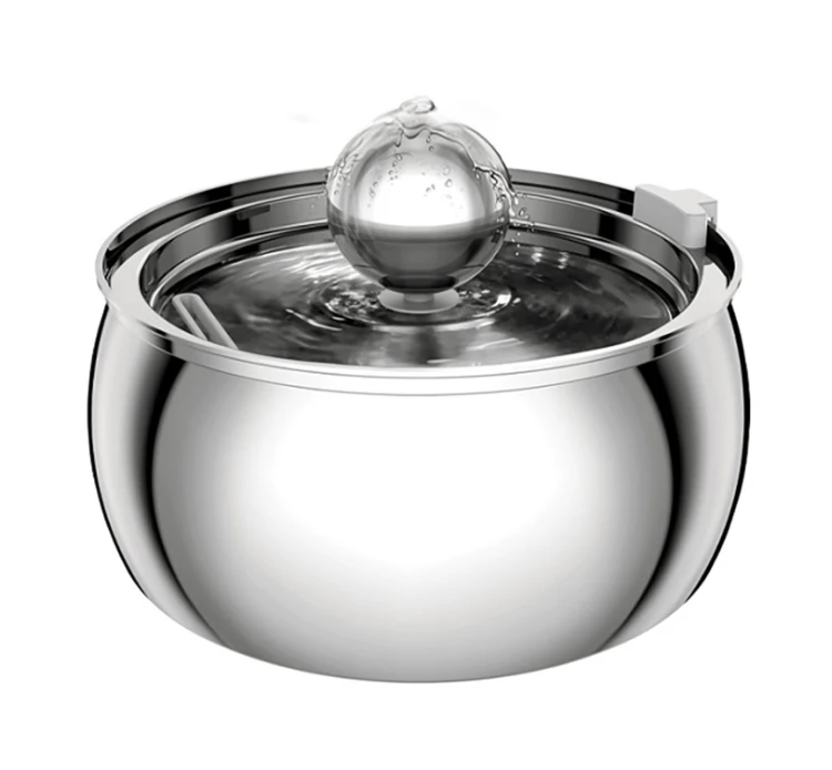 Συντριβάνι συνεχούς ροής με έξοδο νερού σε σχήμα μπάλας, κατάλληλο για γατούλες και σκυλάκια. Η επιφάνεια από ανοξείδωτο ατσάλι δεν επιτρέπει στα βακτήρια να αναπτυχθούν και είναι κατάλληλη για γατούλες και σκυλάκια που έχουν ευαισθησία στο πλαστικό. Ο ήχος του νερού ενθαρρύνει το μικρό μας φίλο να πίνει περισσότερο νερό. Έχει κυκλικό σύστημα ροής νερού για συνεχόμενη ροή και αθόρυβη αντλία. Η μέθοδος επεξεργασίας νερού γίνεται μέσω φίλτρων τα οποία αφαιρούν τις δυσοσμίες, τα υπολείμματα & τις τρίχες από το νερό, το ανανεώνουν και το οξυγονώνουν. Το σχήμα του δίνει τη δυνατότητα στους μικρούς μας φίλους να πίνουν νερό από όλη την επιφάνεια του συντριβανιού. Στη συσκευασία περιλαμβάνεται καλώδιο USB. Διατίθενται επίσης ανταλλακτικά φίλτρα για την καλύτερη λειτουργία του.