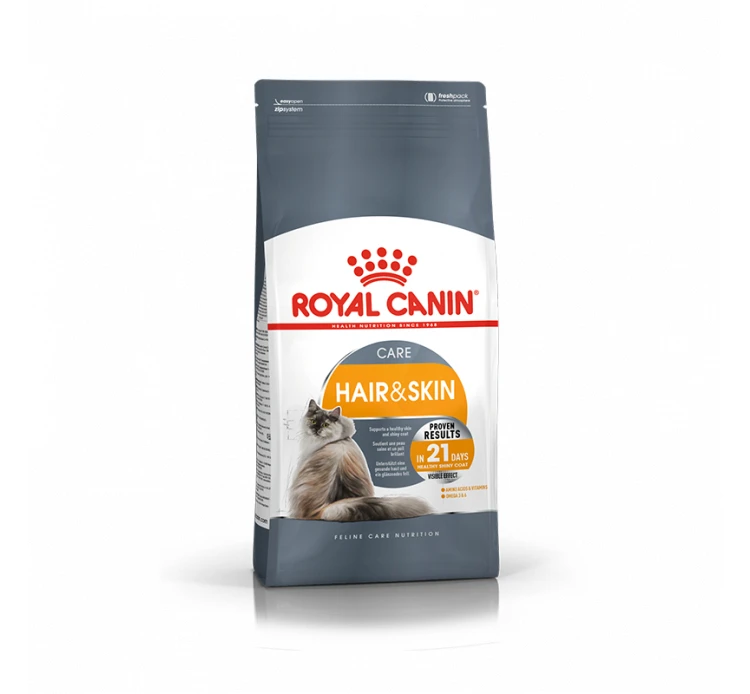 Πλήρης τροφή με πουλερικά και ρύζι, για την υγεία του δέρματος και του τριχώματος της ενήλικης γατούλας σας. Η κατάσταση του τριχώματος και δέρματος της γάτας σας, είναι ένας καλός δείκτης για τη συνολική υγεία της. Ένα υγιές τρίχωμα πρέπει να είναι λαμπερό και απαλό. Η υπερβολική περιποίηση και το ξύσιμο μπορούν να προκαλέσουν βλάβες στο δέρμα της, διαταράσσοντας τον επιδερμικό φραγμό. Η τροφή αυτή φροντίζει το δέρμα και τρίχωμα από μέσα προς τα έξω.