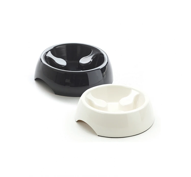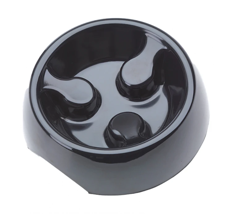 Μπολ φαγητού ή νερού, ιδανικό για λαίμαργα σκυλάκια, καθώς το σχήμα του αποτρέπει την ανεξέλεγκτη κατάποση από το μικρό μας φίλο. Πολλά σκυλιά έχουν την ανθυγιεινή συνήθεια να καταβροχθίζουν το φαγητό ή το νερό τους πολύ γρήγορα. Έτσι καταπίνουν περισσότερο αέρα ή δεν μασούν επαρκώς, κι αυτό μπορεί να οδηγήσει σε πολλά προβλήματα όπως δυσπεψία, έμετο ή φούσκωμα, τα οποία θα μπορούσαν να είναι απειλητικά για τη ζωή του μικρού μας φίλου. Το μπολ αυτό έχει σχεδιαστεί ειδικά για να αναγκάζει το σκυλάκο σας να τρώει ή να πίνει με πιο αργό ρυθμό. Τα εμπόδια που έχει το μπολ αναγκάζουν το σκυλάκο σας να τρώει γύρω από αυτά, και επομένως αποτρέπουν την καταβρόχθιση της τροφής. Με αυτόν τον τρόπο, προσλαμβάνει λιγότερο αέρα, παράγει περισσότερο σάλιο και πρέπει να μασά περισσότερο, με αποτέλεσμα τη βελτίωση της πέψης και τη μείωση του κινδύνου φουσκώματος. Το μπολ είναι κατασκευασμένο από μελαμίνη, ένα μη τοξικό στιβαρό πλαστικό και έχει αντιολισθητικό χείλος για ενίσχυση της σταθερότητας και αποφυγή ολίσθησης του μπολ κατά τη διάρκεια του φαγητού. Μπορείτε να το πλύνετε στο πλυντήριο πιάτων και είναι κατάλληλο για νερό, ξηρή ή υγρή τροφή.