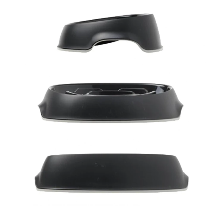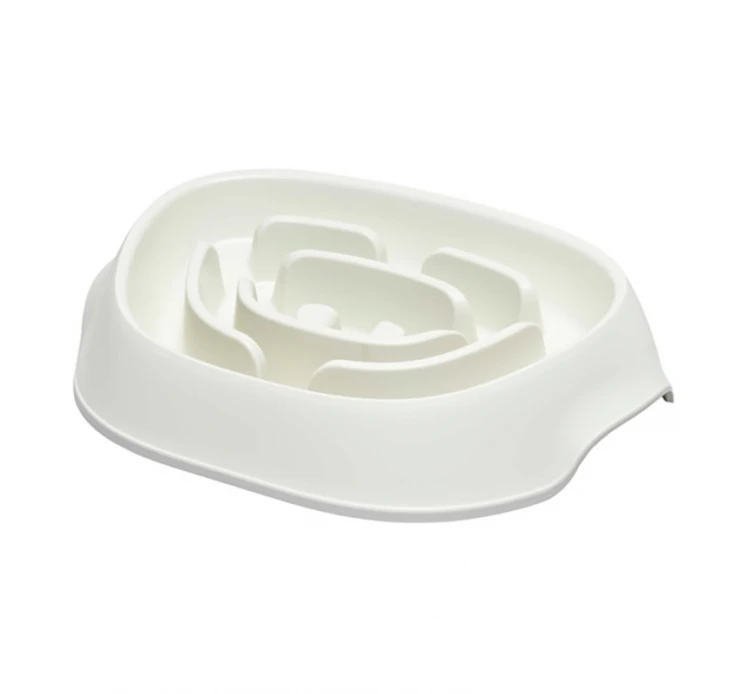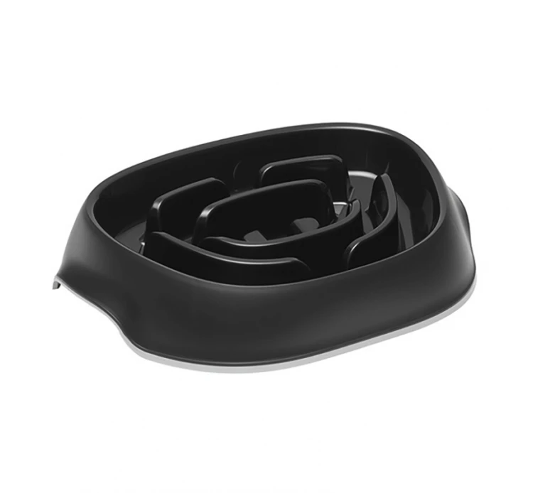 Μπολ φαγητού σε δύο χρώματα, μαύρο ή λευκό, ιδανικό για λαίμαργα σκυλάκια, καθώς το σχήμα του αποτρέπει την ανεξέλεγκτη κατάποση από το μικρό μας φίλο. Έχει κλίση προς τα εμπρός, ώστε η τροφή να μετακινείται ρυθμικά προς το σκυλάκο σας. Έχει υποδοχές για να μπορείτε να το χειρίζεστε εύκολα κατά την διάρκεια του καθαρισμού ή του γεμίσματος. Η βάση από καουτσούκ εμποδίζει την ολίσθηση και την ανατροπή. Είναι κατάλληλο για το πλυντήριο πιάτων για καθημερινή ευκολία. Είναι εγκεκριμένο για τρόφιμα, χωρίς BPA, από μη τοξικό πλαστικό υψηλής ποιότητας.