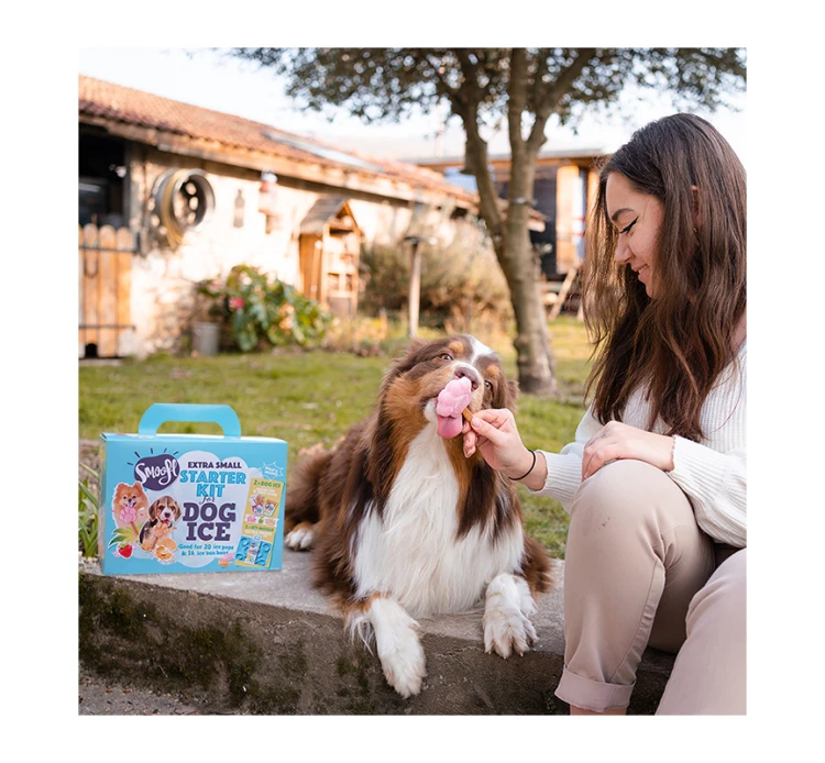 Καλοκαίρι=παγωτό, και αυτό ισχύει και για το σκυλάκι σας! Με αυτό το κιτ έχετε όλα όσα χρειάζεστε για να φτιάξετε πάρα πολύ εύκολα υπέροχα παγωτά και να προσφέρετε στο μικρό μας φίλο μια παγωμένη απόλαυση που θα τον ξετρελάνει! Στη συσκευασία περιλαμβάνονται: μια φόρμα σιλικόνης που φτιάχνει 5 παγωτά σε σχήμα πατούσας και 4 παγωτά-λιχουδιές, μείγμα παγωτού σε δύο γεύσεις, φράουλα και φυστικοβούτυρο, και 10 βρώσιμα ξυλάκια, και έτσι μπορείτε να έχετε έτοιμα παγωτά στο λεπτό! Το μόνο που έχετε να κάνετε είναι να ανακατέψετε το μείγμα με λίγο νερό για 1 λεπτό και στη συνέχεια να το παγώσετε στην κατάψυξη. Τόσο απλά, τόσο εύκολα! Το μείγμα δεν περιέχει λακτόζη, σιτηρά και λιπαρά, και έτσι μπορείτε άφοβα να κακομάθετε το σκυλάκο σας. Είναι ιδανική ανταμοιβή για τις ζεστές ημέρες όπου ο μικρός μας φίλος έχει ανάγκη από δροσιά!