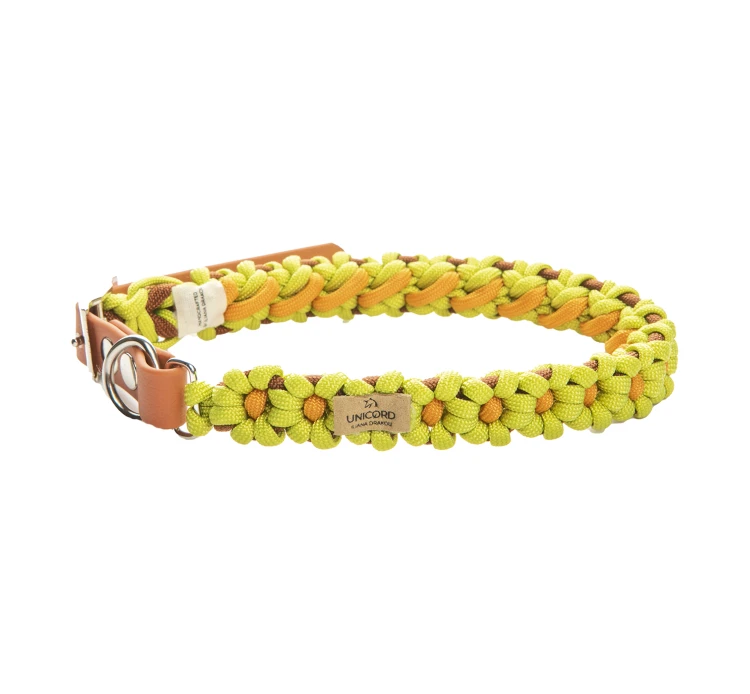 Unicord Χειροποίητο Κολάρο – Περιλαίμιο Γάτας Flower Power Lime-Καφέ-Μανταρινί 23cm