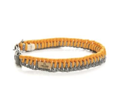 Περιλαίμιο χειροποίητο, για τη γατούλα σας. Είναι φτιαγμένο από πολυεστέρα biothane, ένα υλικό υψηλής αντοχής που δεν συγκρατεί μυρωδιές, καθώς και σχοινί paracord, το οποίο είναι λεπτό αλλά εξαιρετικά ανθεκτικό, αφού συγκρατεί βάρος έως και 250kg. Κλείνει με πλαστικό κλιπ ενώ τα μεταλλικά στοιχεία του είναι από ανοξείδωτο ατσάλι.