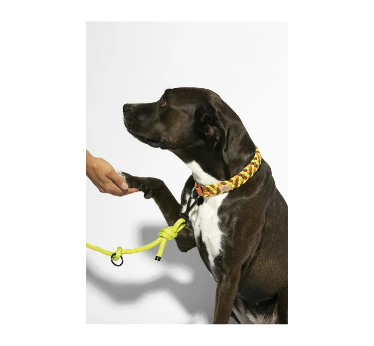 Περιλαίμιο χειροποίητο, για το σκυλάκι σας. Είναι φτιαγμένο από πολυεστέρα biothane, ένα υλικό υψηλής αντοχής που δεν συγκρατεί μυρωδιές, καθώς και σχοινί paracord, το οποίο είναι λεπτό αλλά εξαιρετικά ανθεκτικό, αφού συγκρατεί βάρος έως και 250kg. Τα μεταλλικά στοιχεία του είναι από ανοξείδωτο ατσάλι. Κλείνει με πόρπη και έχει ρυθμιζόμενο μήκος, όπως φαίνεται στα διαθέσιμα μεγέθη, ώστε να ταιριάζει στο λαιμό του μικρού μας φίλου. Είναι μια υπέροχη δημιουργία που θα μαγνητίσει όλα τα βλέμματα και ο σκυλάκος σας θα εντυπωσιάσει όπου κι αν βρεθεί.