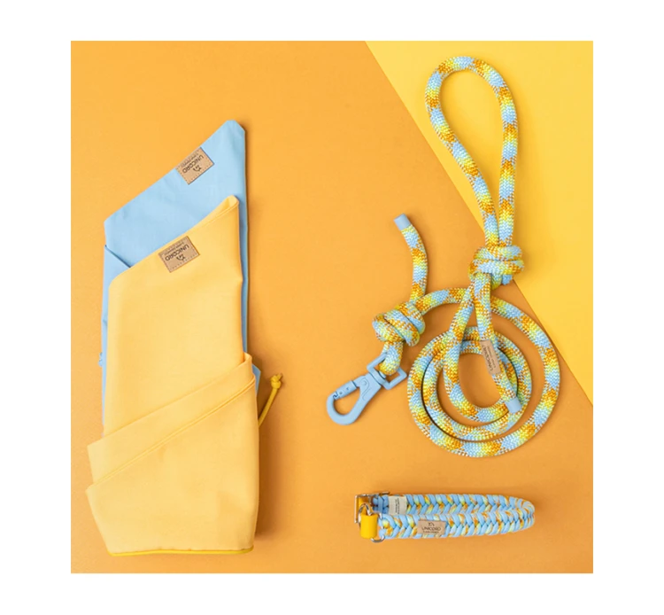 Οδηγός χειροποίητος, σε κίτρινο και γαλάζιο χρώμα, για το σκυλάκι σας άνω των 15kg. Είναι φτιαγμένος από πολυεστέρα biothane, ένα υλικό υψηλής αντοχής που δεν συγκρατεί μυρωδιές, καθώς και σχοινί paracord, το οποίο είναι λεπτό αλλά εξαιρετικά ανθεκτικό, αφού συγκρατεί βάρος έως και 250kg. Τα μεταλλικά στοιχεία του είναι από ανοξείδωτο ατσάλι και έχει κούμπωμα ασφαλείας. Διατίθεται σε διάφορα μήκη για να διαλέξετε τον κατάλληλο για το μικρό μας φίλο.