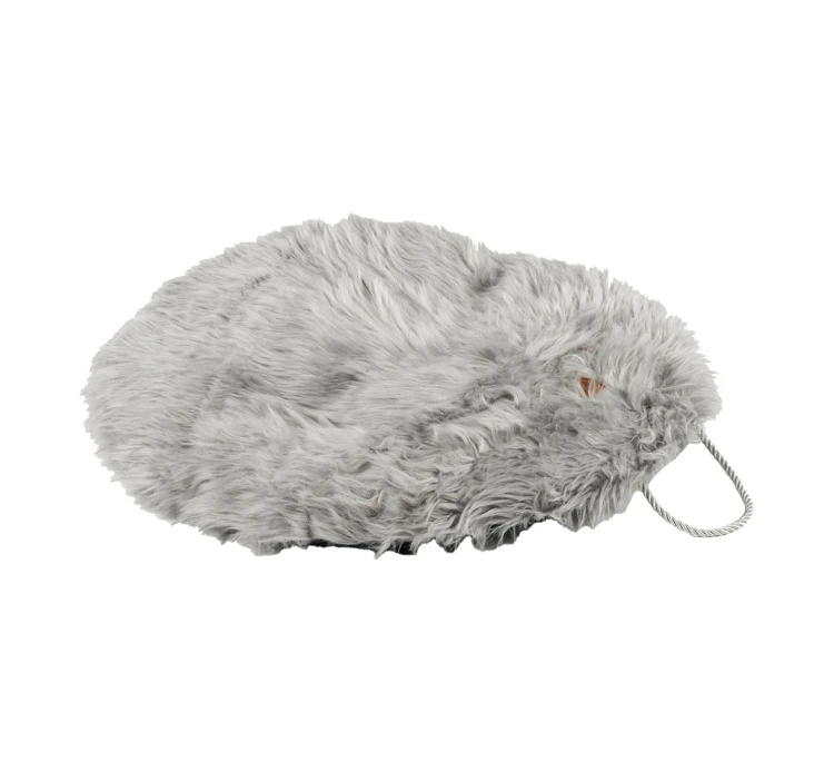 Μαξιλάρι σε γκρι χρώμα, για το σκυλάκι σας ή το γατάκι σας. Είναι κατασκευασμένο από μακρύτριχη γούνα και έχει αδιάβροχο μαύρο πάτο. Το σχήμα του βοηθά τους ανήλικους ή τους ηλικιωμένους μικρούς μας φίλους να βγαίνουν και να μπαίνουν στο μαξιλαράκι τους χωρίς καμία προσπάθεια. Συνιστάται να το πλένετε στους 30ο, στις χαμηλότερες στροφές, χωρίς λευκαντικό. Το χρώμα του υφάσματος είναι μη τοξικό και γι’ αυτό είναι προτιμότερο να το στεγνώνετε σε σκιερό μέρος.
